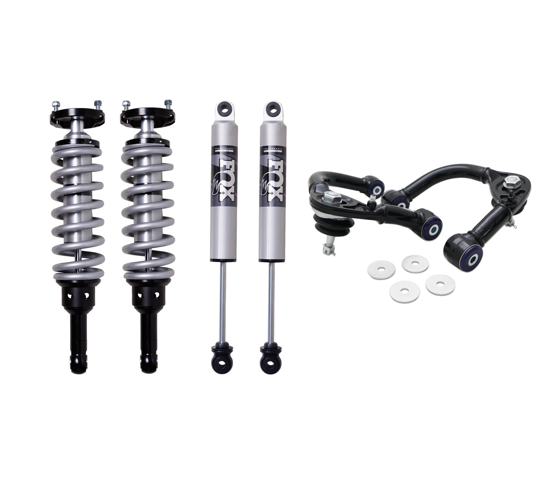 This kit includes FOX 2.5 Performance Shocks and Front Upper Control Arms.