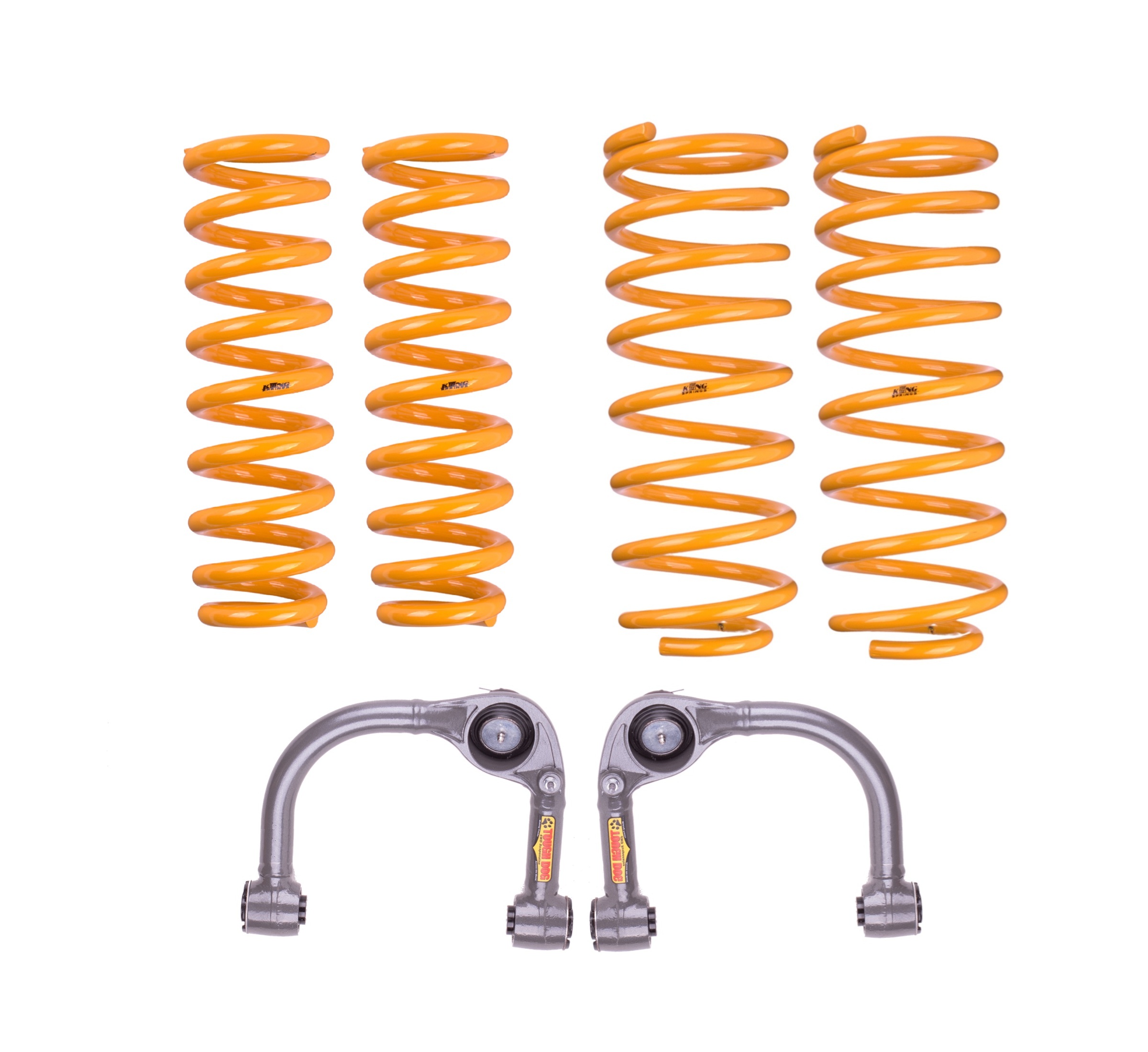 This kit includes King Springs and Tough Dog Upper Control Arm Kit.