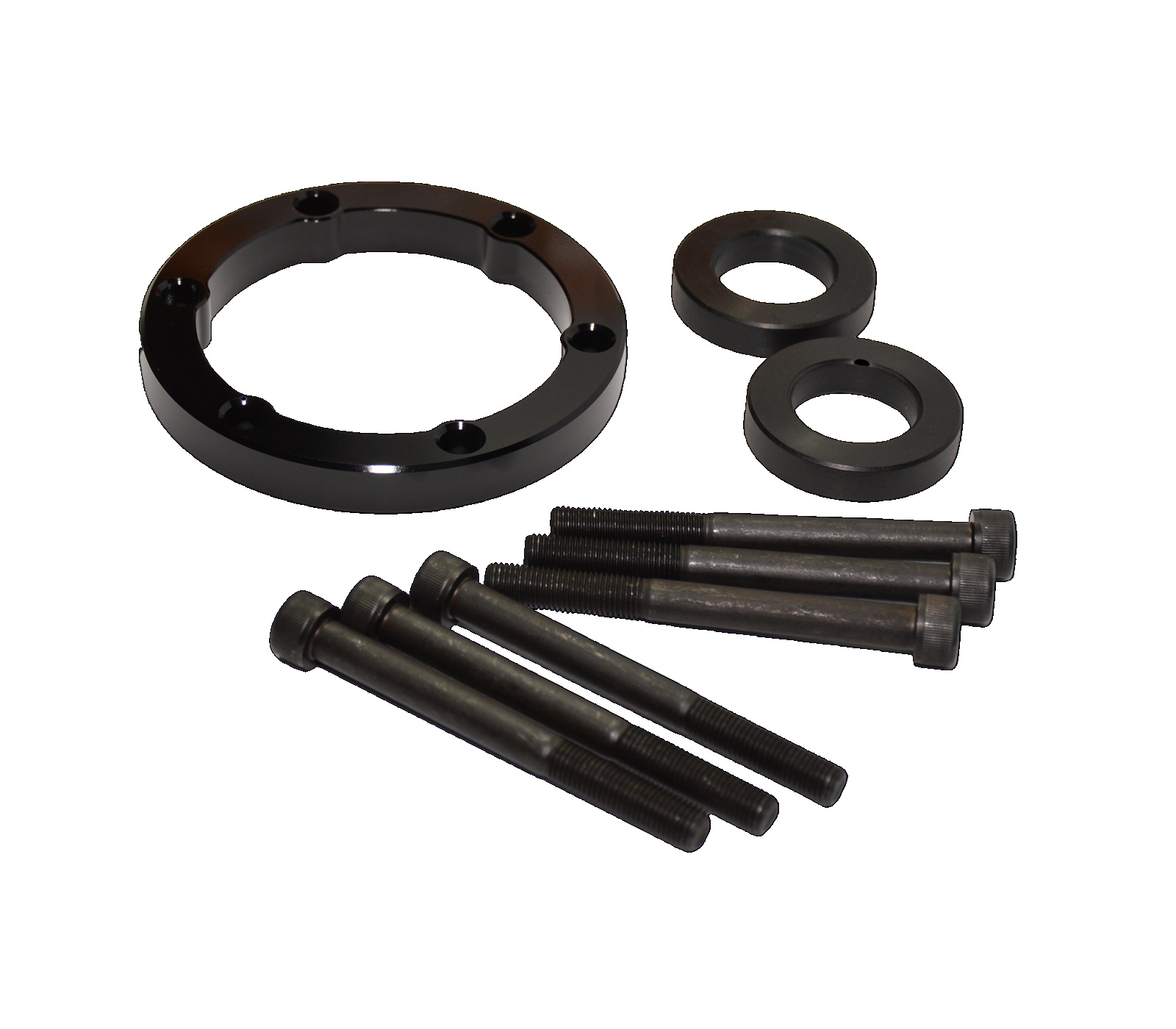 Tail Shaft Spacers are required when you have a large amount of lift and the tail shaft is in danger of separating at the slip joint. The Tail Shaft Spacer simply mounts between the tail shaft flange and the diff flange. Kit includes longer high tensile bolts necessary for installation.