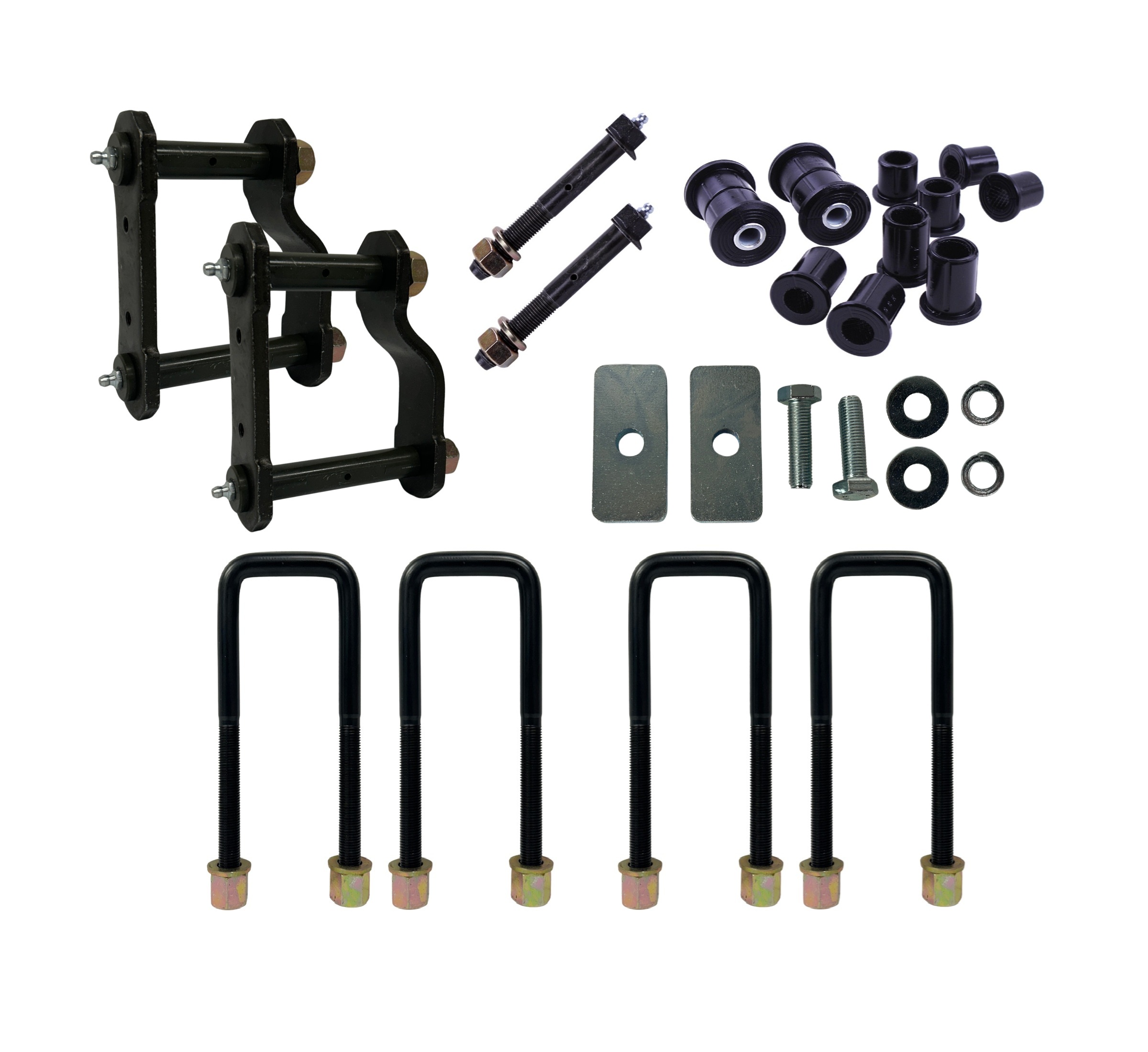 Includes U-Bolts, Greasable Pins, Greasable Shackles and Rear Leaf Spring Bush Kit.