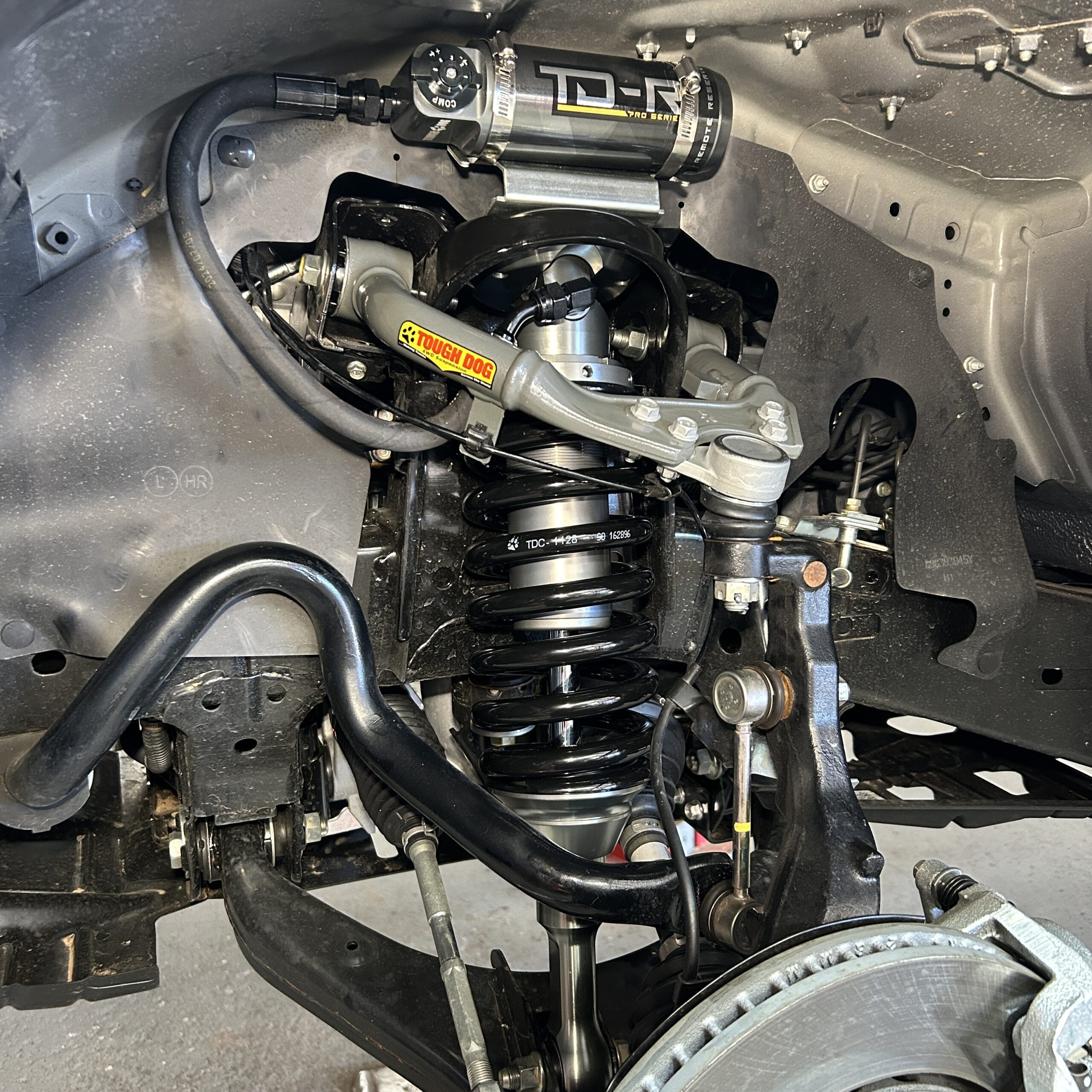 This kit includes Tough Dog TD-R Pro Series Remote Reservoir Shocks, Tough Dog Raised Springs and required fitting components.