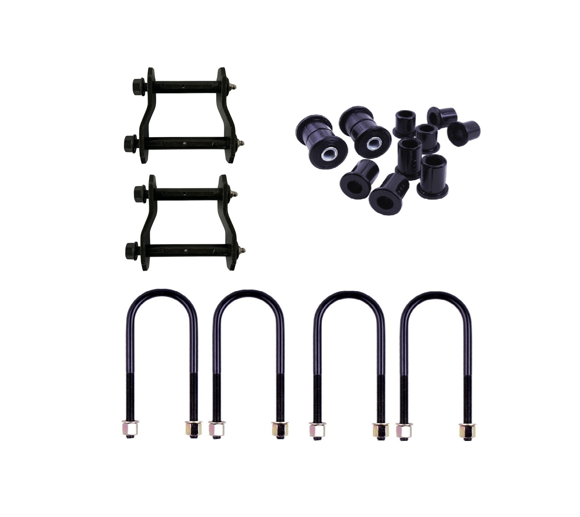 Includes U-Bolts, Greasable Shackles and Rear Leaf Spring Bush Kit.