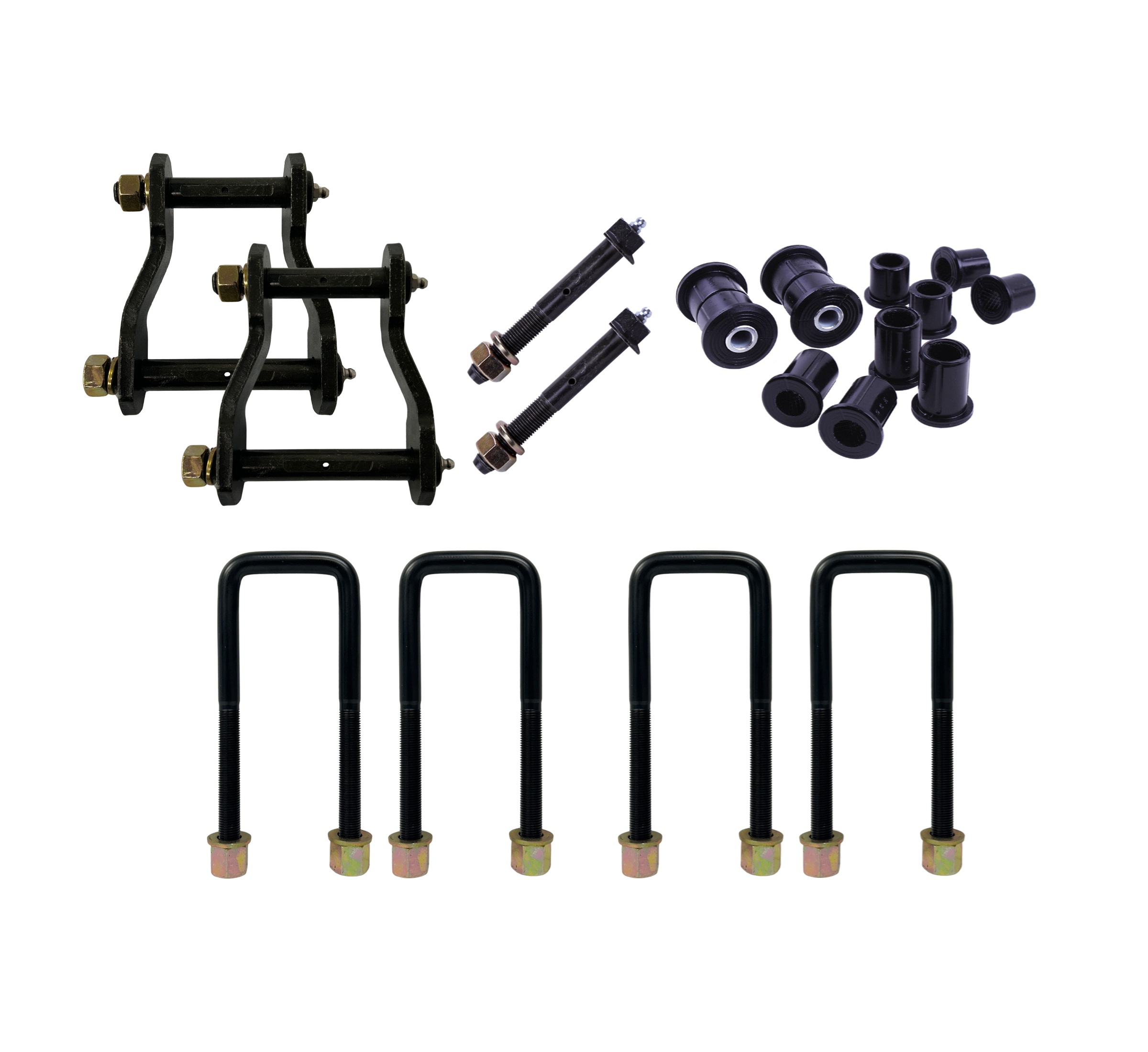 Includes U-Bolts, Greasable Pins, Greasable Shackles and Rear Leaf Spring Bush Kit.
